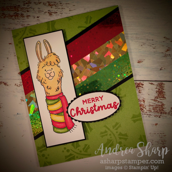 This sketch is a perfect layout to feature the tall and skinny image of the llama in the Long Time No See stamp set. I stuck quite close to the original sketch layout except I added a greeting element. As I’ve said before there are no sketch police that will give me grief.😉