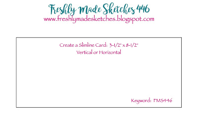 Apparently Slimline cards have become all the rage among card makers and I’ve been clueless that this was a “thing”. Thanks to this challenge I was inspired to give the format a try, and I can definitely say that it is a lot of fun! I’ve been doing a little exploring on Pinterest and I’ve found some amazing creations that have motivated me to try it some more. These cards are sized perfectly to go in #10 Business envelopes and not require special sized cardstock or extra postage. They aren’t a great size for mass production because you only get 1 card base out of a sheet of cardstock, with a 4″ x 8 1/2″ scrap leftover. Now I can certainly use that piece for other projects, but I don’t want a whole bunch of them. So… for me, this is a good design when creating a single card which is what I do mostly anyhow.